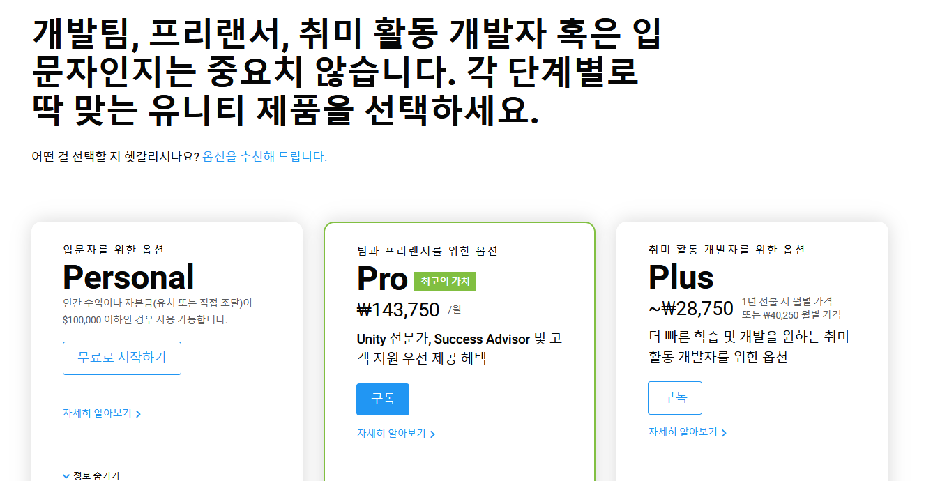 유니티 공식 사이트 : https://store.unity.com/kr