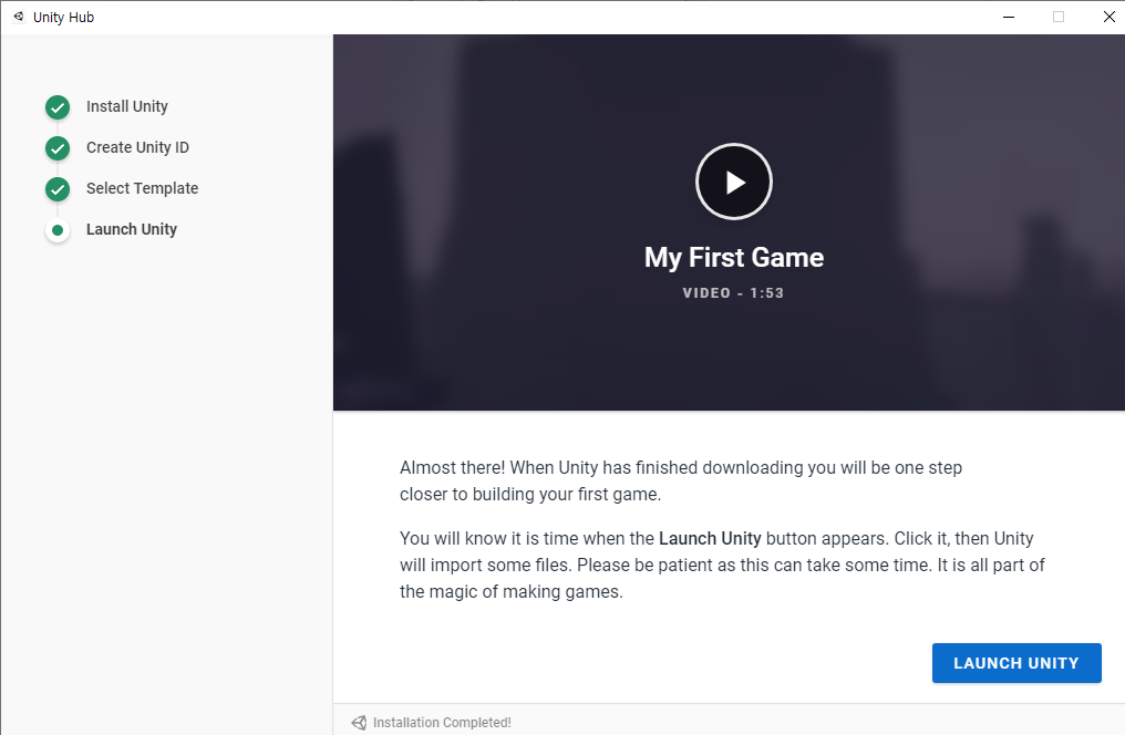 지금까지 유니티에 대해서 알아보고, 게임 개발 환경 구축을 위해 유니티를 설치하고 안드로이드에서 실행하기 위한 준비를 끝냈습니다. 다음 강의에선 유니티의 화면 구성을 살펴보고 프로젝트를 만들어 보도록 하겠습니다.