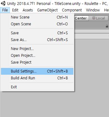 TitleScene을 편집하고 있는 상태에서 File > Build Settings.. 을 선택합니다.