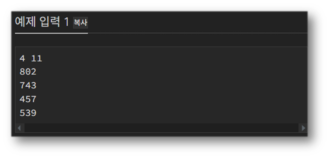 * 첫째 줄 : 랜선의 개수 K, 필요한 랜선의 개수 N